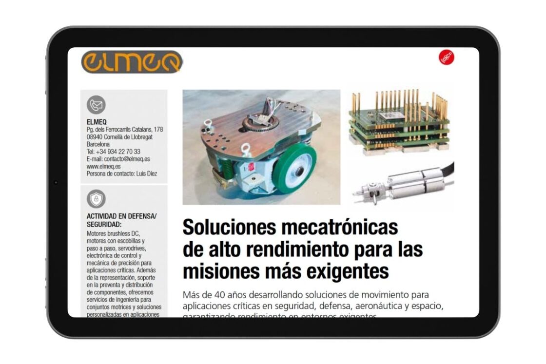 En este contexto, en los últimos años Elmeq se ha convertido en un proveedor clave para los fabricantes de maquinaria de defensa. Tal y como recoge Spain Defence & Security Industry 2026, la empresa de soluciones mecatrónicas tiene más de 40 años de experiencia ofreciendo soluciones de ingeniería para las misiones más exigentes en aeronáutica, espacio, seguridad o defensa. “Desde robots remotos y UGV hasta sistemas de guiado de misiles, óptica de precisión o paneles solares para satélites, entendemos que la industria requiere sistemas motrices precisos, robustos y capaces de operar en condiciones extremas”, afirma Elmeq.
